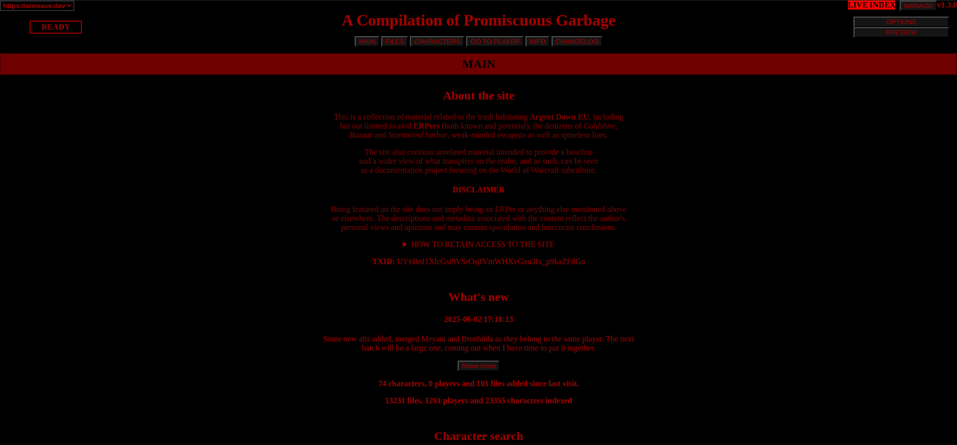 Even despite of the ArNS-name being blacklisted, the site can still be accessed with its TXID UY6BnI1XlcGsi9VSrOsjfVmWHXvGxu3Ix_p9kaZFdGo for version 1.3.0 - a mirror might also exist at https://silanael.com/cpg/, though even that fetches all the content from Arweave.