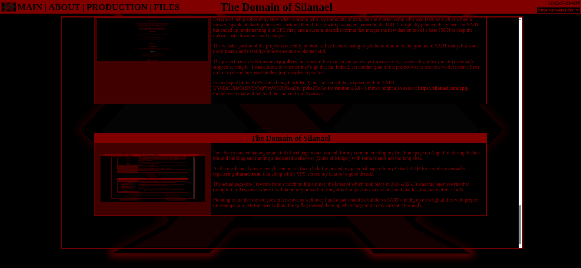 Planning to archive the old sites to Arweave as well once I add a path-manifest builder to SART and dig up the original files with proper timestamps (a SFTP-transfer without the -p flag messed them up when migrating to my current ZFS-pool).